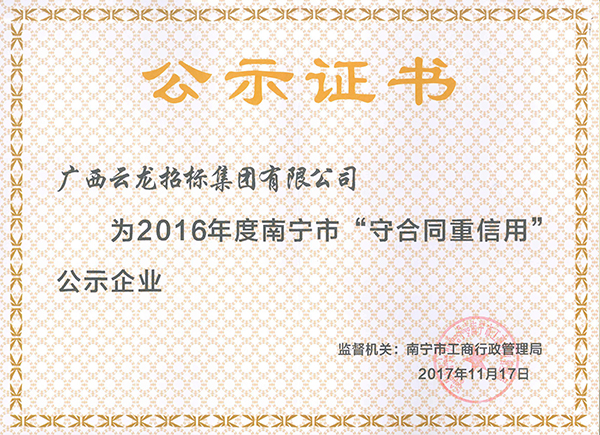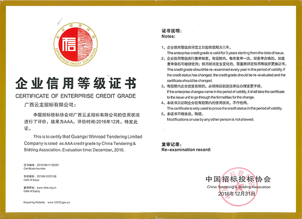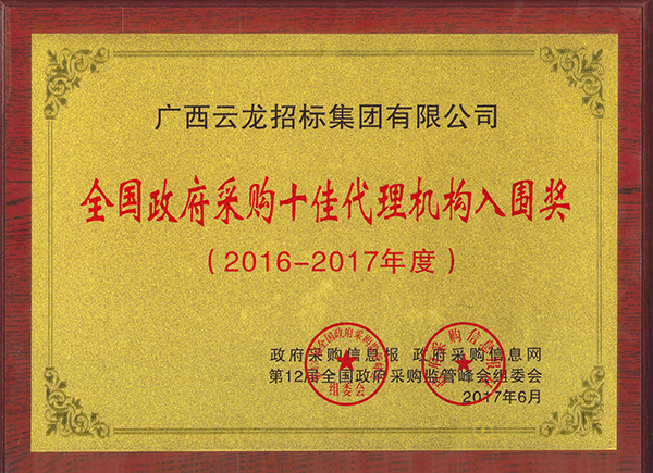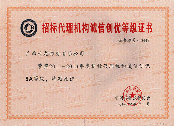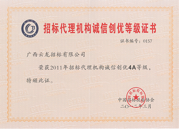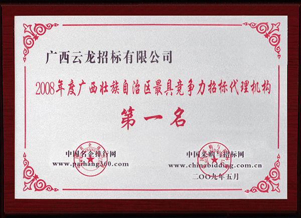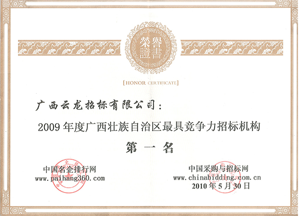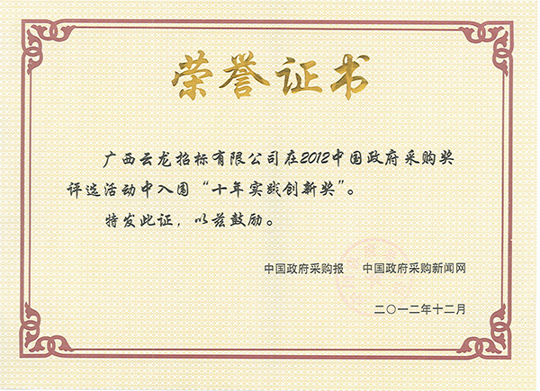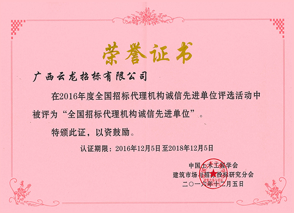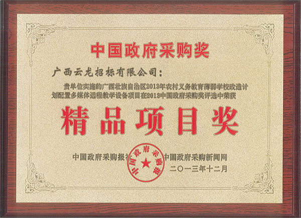中國采購與招標網榮譽證書