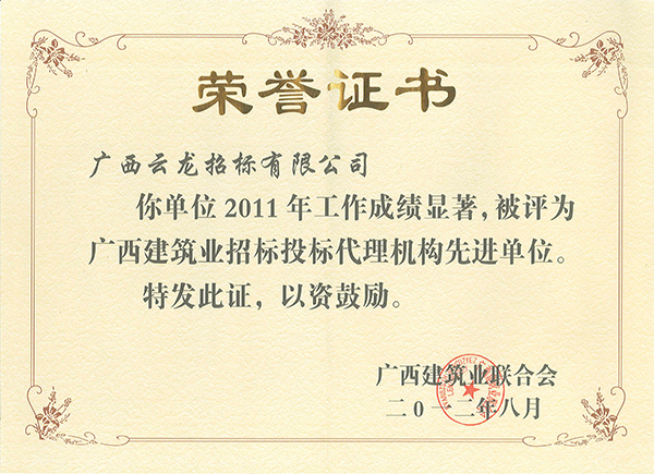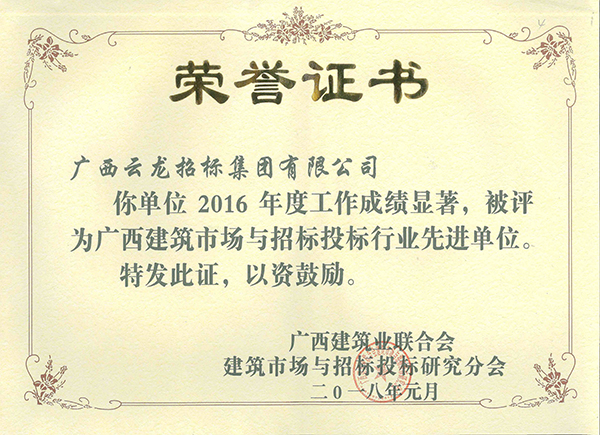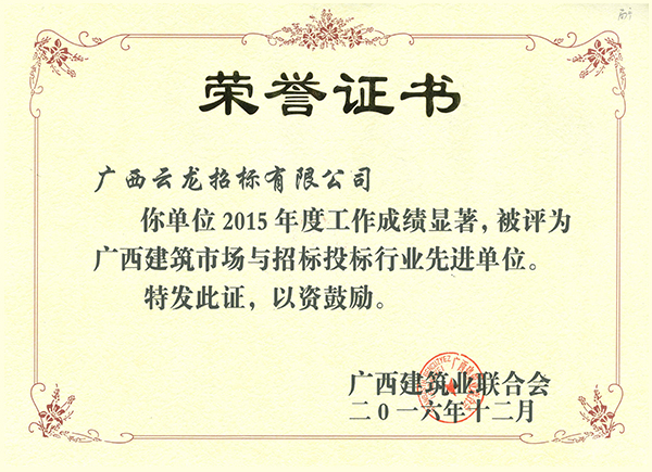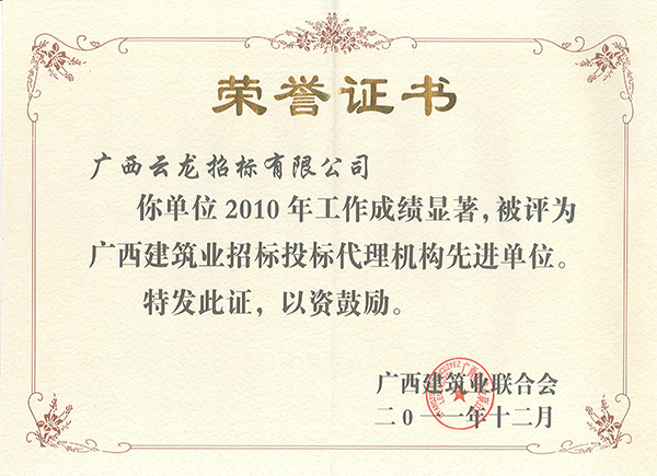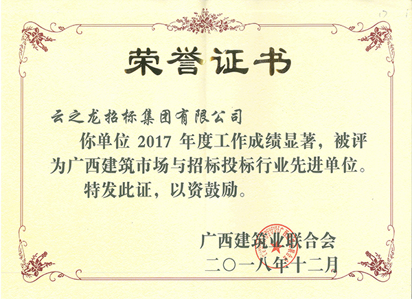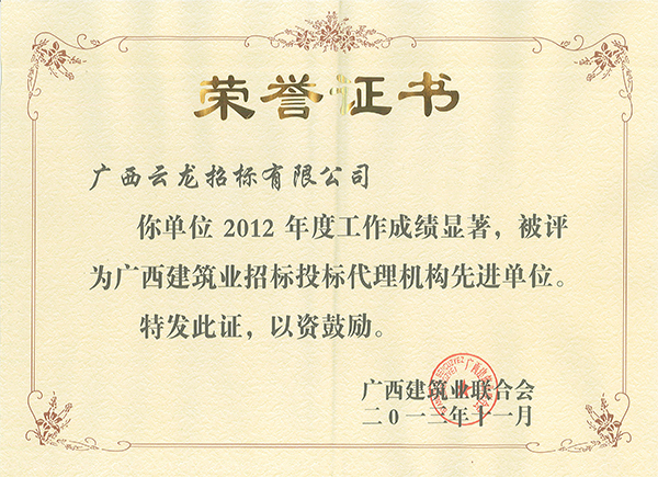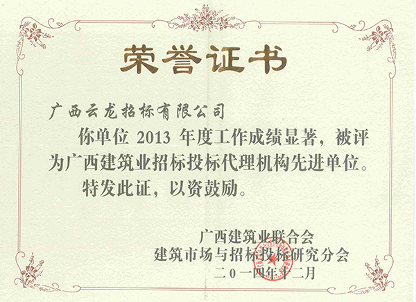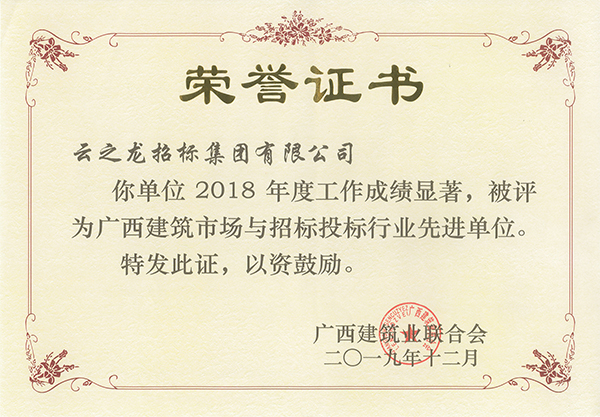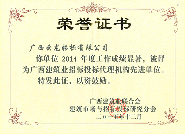 廣西建筑業(yè)聯(lián)合會榮譽證書