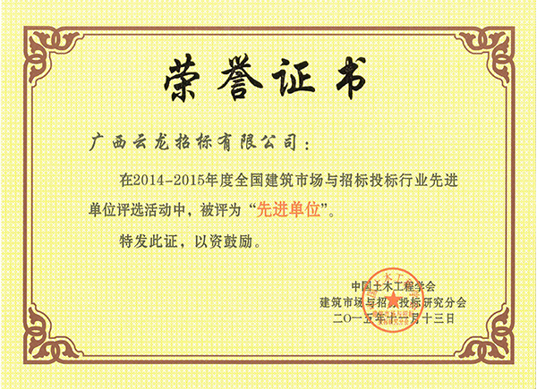 中國采購招標協(xié)會榮譽證書