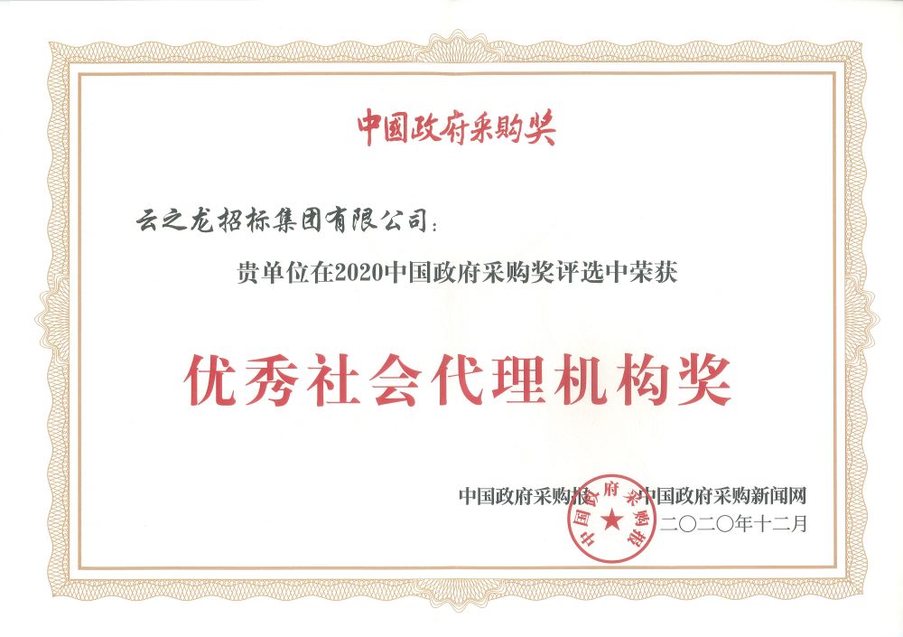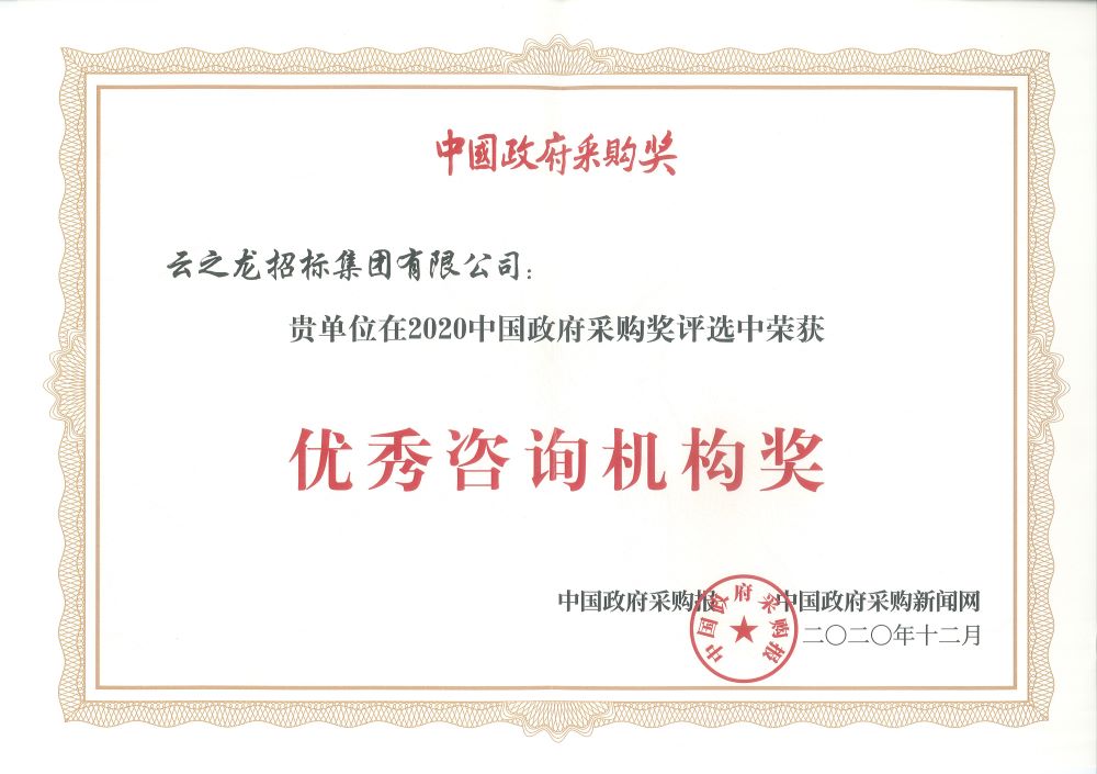 中國政府采購報、中國政府采購新聞網榮譽證書