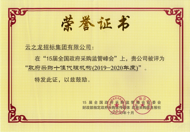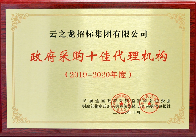 【喜訊】熱烈祝賀云之龍集團榮獲“全國政府采購十佳代理機構(gòu)(2019-2020年度)”稱號
