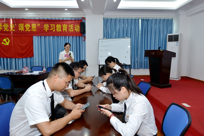 在活動開始前,黨支部副書記韓俊發表講話,他說:“黨史學習教育活動,可以豐富支部的主題黨日活動,提高黨員的思想品德和行動積極性。學習黨史有利于黨員在工作中發揮排頭兵作用和良好的工作作風,同時,以點帶面,影響周邊的同事,在集團里形成一股風清氣正、積極向上的企業氛圍。”