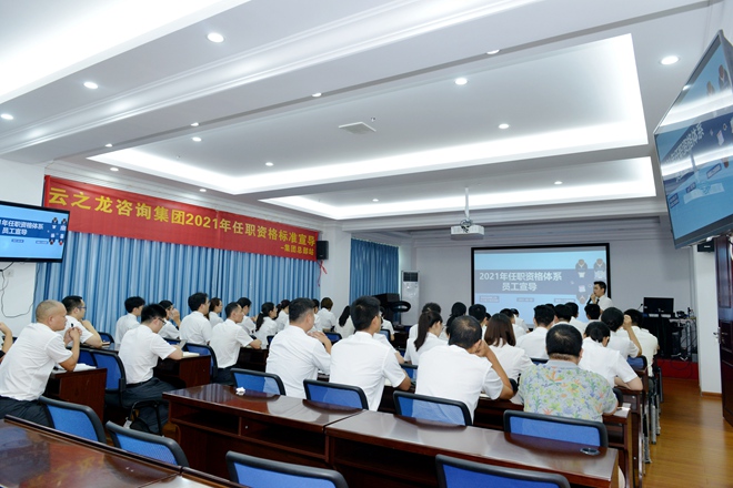 為推行任職資格體系建設,加強人才管理,不斷提升人才素質,努力建設一支“知識型、技能型、創新型”高素質人才隊伍,2021年7月28日-8月13日,云之龍咨詢集團總裁王鐿霖和副總裁韓俊帶領人力資源部三位講師到集團各部門各分公司,開展了15場全面任職資格標準宣導。