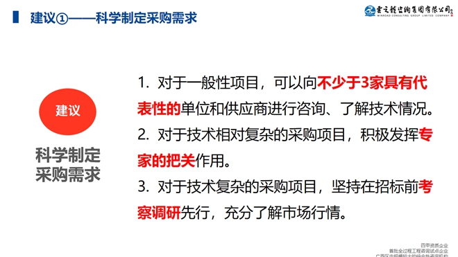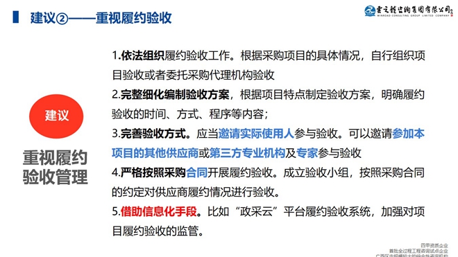聶嘉薇副總裁的課程圍繞采購人主體責任的重點和政府采購全過程管理風險防控。她說到,《廣西深化政府采購制度改革工作方案》明確了強化采購人五個方面的主體責任,其中兩個是采購需求制定和履約情況驗收。因此,科學制定采購需求,規范地實行履約驗收顯得尤為重要。我們作為咨詢機構,該如何幫助采購人減輕主體責任,規避政府采購采購的風險。這將是我們在宣講過程中要為采購人解答的重點問題。