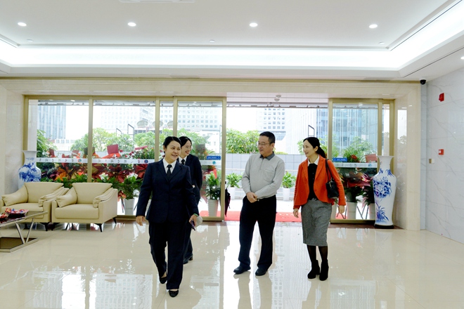 揭牌儀式后,集團領導帶領各位嘉賓參觀集團大廈。新的辦公室寬敞明亮,辦公設備高端大氣,配有企業文化室、多功能培訓室、多功能會議室。新的開標大廳、電子評標室、雙向系統評標室等配備了先進的開標、評標系統,更加高端舒適。