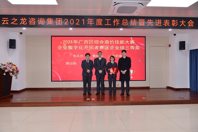 云之龍咨詢集團董事長梁榮森、總裁王鐿霖參加會議并作重要講話。王鐿霖總裁作2021年度工作報告,部署下一年重點任務。會議表彰了2021年涌現的先進集體和個人。