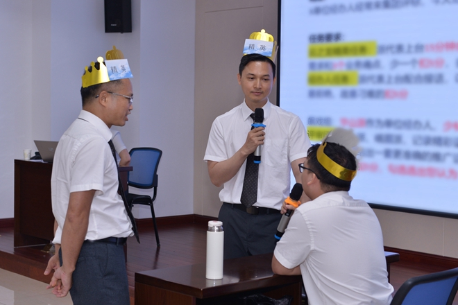 聶總精心策劃組織了專業(yè)話術(shù)情景模擬演練PK賽,將現(xiàn)場(chǎng)學(xué)員分為“昆侖”“峨眉”“少林”“華山”4個(gè)組別。通過4個(gè)最有可能接觸客戶的場(chǎng)景,讓學(xué)員現(xiàn)場(chǎng)模擬日常與客戶溝通交流的過程。演練結(jié)束后,學(xué)員當(dāng)場(chǎng)歸納總結(jié)在演練中表現(xiàn)出的精彩語錄和溝通技巧。通過學(xué)習(xí)及練習(xí),最后總結(jié)沉淀經(jīng)驗(yàn),讓學(xué)員們身臨其境,印象深刻,收獲頗多。