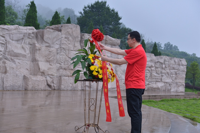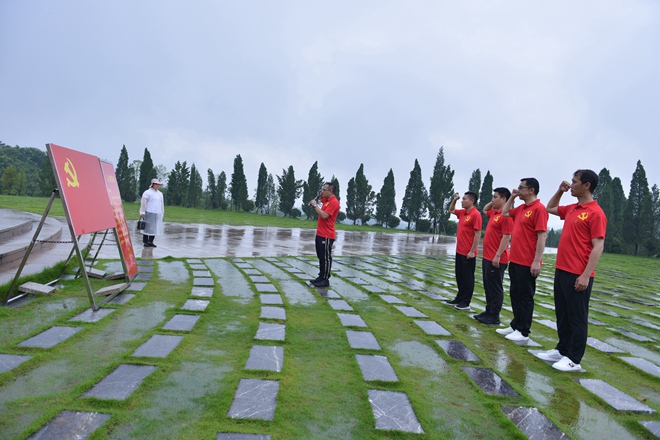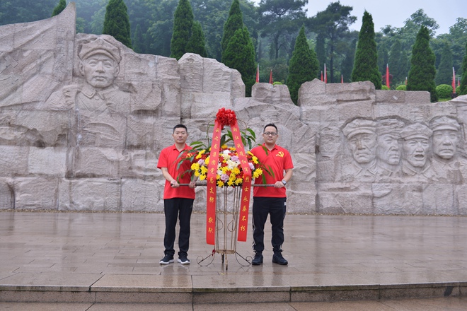 當(dāng)天,湘江戰(zhàn)役紀(jì)念園內(nèi)青松蒼翠,大雨磅礴。云之龍黨總支部副書記韓俊、組織委員蒙舒蕓、宣傳委員蔣銀亮,以及辦公室黨支部書記毛麒盛、玉林分公司黨支部書記劉柱冒雨前來(lái)紀(jì)念園。大家懷著對(duì)革命先烈無(wú)比崇敬的心情,緬懷紅軍烈士雕像,向烈士雕像敬獻(xiàn)花籃并默哀、三鞠躬。