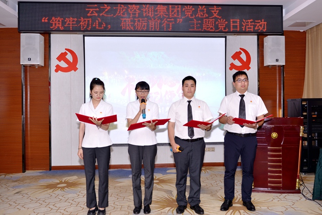 辦公室黨支部書記毛麒盛帶領(lǐng)黨員重溫入黨誓詞。一句句鏗鏘誓詞不斷激勵(lì)和鼓舞每一位黨員同志,堅(jiān)定力量信念,時(shí)刻保持初心,堅(jiān)守使命。