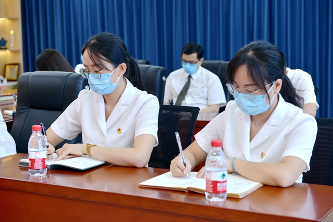 黨員邊聽邊做筆記