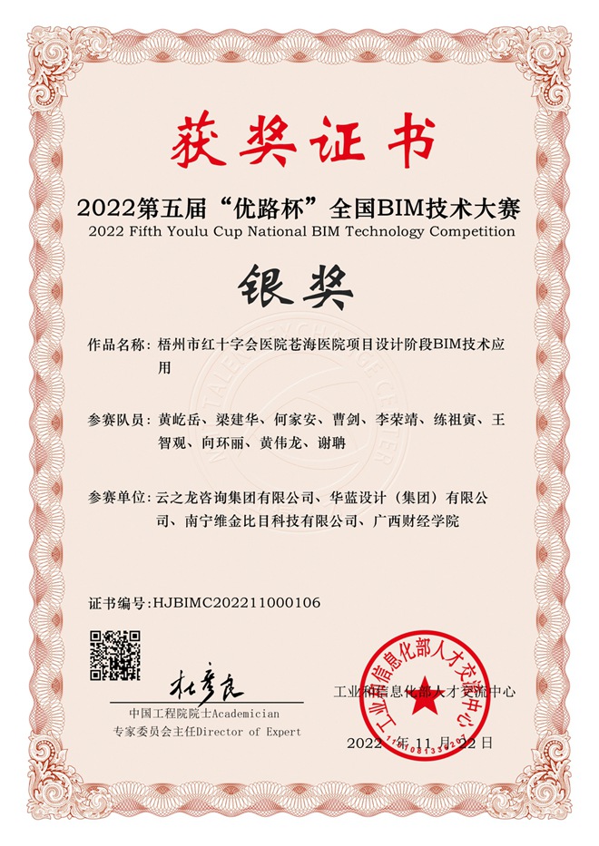 榮獲第五屆優(yōu)路杯全國(guó)BIM技術(shù)大賽“銀獎(jiǎng)”