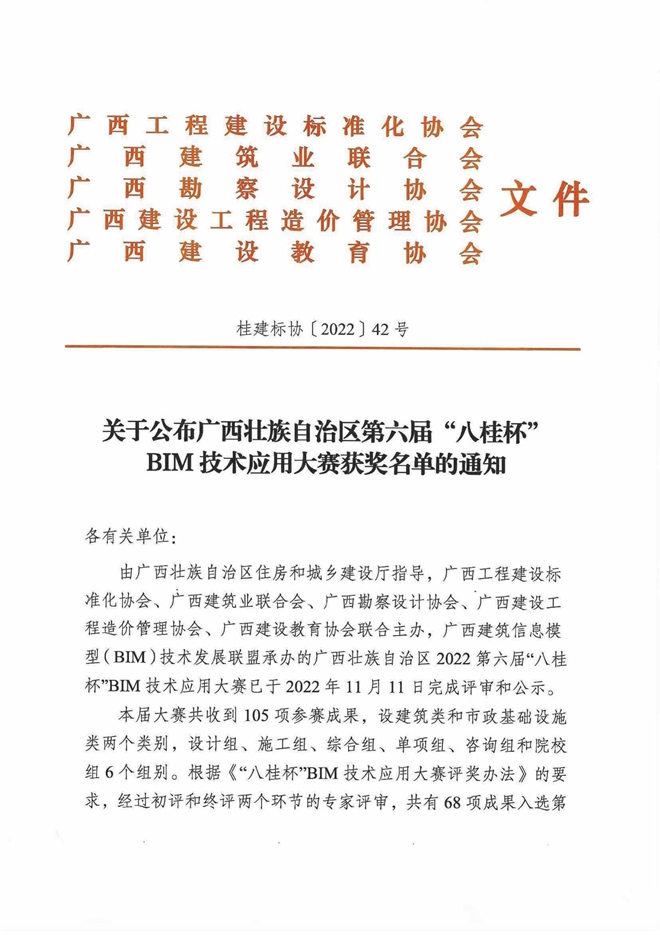 榮獲第六屆“八桂杯”BIM技術(shù)應(yīng)用大賽“三等獎(jiǎng)”