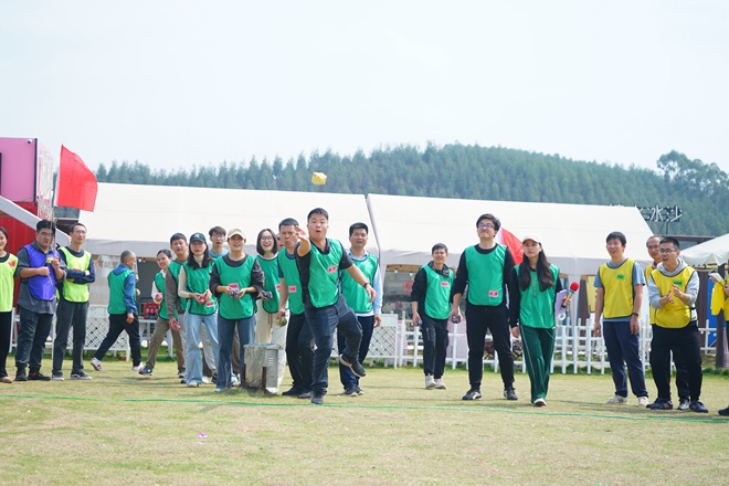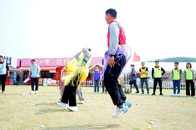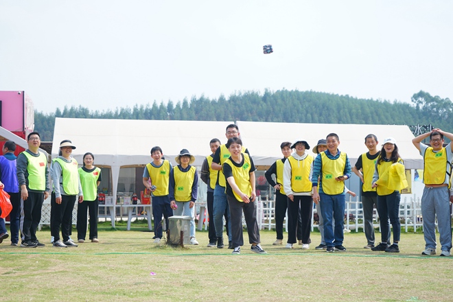 活動中,還準備了“躲貓貓、抖臀達人、蜻蜓點水、沙包擲準、坐地起身”等趣味游戲,100多人分為6個小組,團結協作,互相比拼,贏取積分,拿下勝利果實。