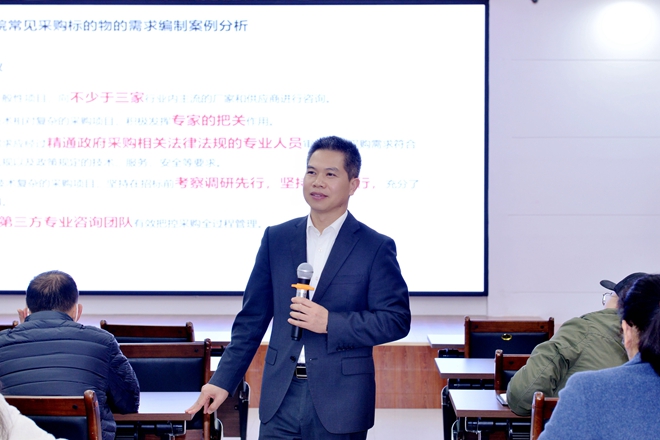 韋明劍校長(zhǎng)圍繞科學(xué)編制采購需求文件、評(píng)分辦法制定、質(zhì)疑投訴處理、合同履約等環(huán)節(jié),結(jié)合法律法規(guī)及相關(guān)案例進(jìn)行深入淺出地講解,讓醫(yī)院采購負(fù)責(zé)人更加深入地掌握政府采購的方法與技巧。