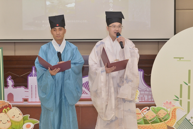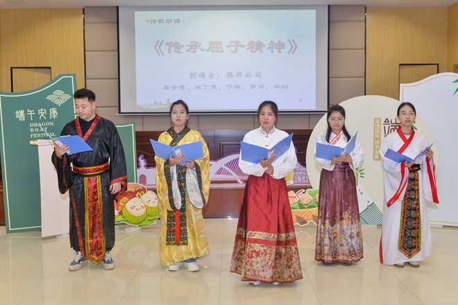 在誦讀經典環節,誦讀者們聲情并茂、滿懷熱情地朗誦了《小重山·端午》《傳承屈子精神》《端午詠屈原》《永恒的端午》等經典詩篇。
