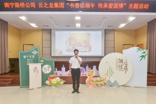 在中國傳統佳節端午節即將到來之際,2024年6月6日,南寧路橋公司黨總支聯合云之龍咨詢集團黨總支開展“書香話端午,傳承愛國情”主題活動,共同分享端午佳節故事,誦讀端午經典詩篇,一同感受中國傳統文化的魅力。