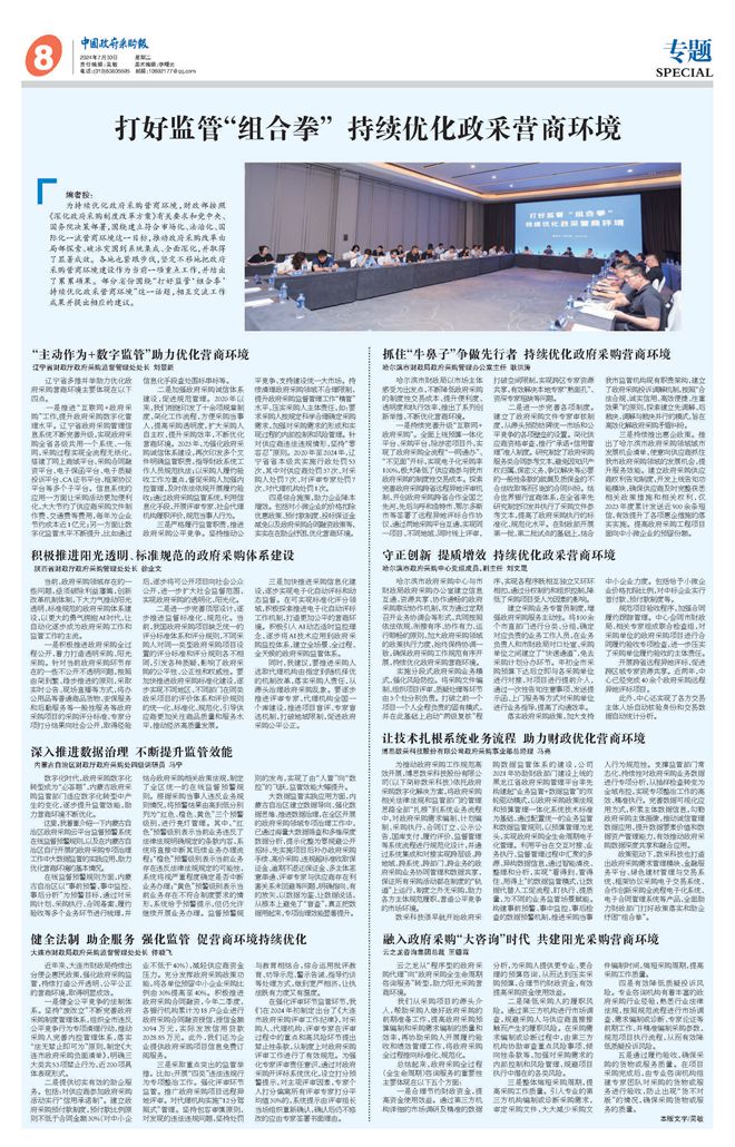 近日,由黑龍江省財政廳和哈爾濱市財政局主辦、中國政府采購報承辦的“優化政府采購營商環境”經驗交流活動在哈爾濱市圓滿舉行。來自中央及地方政府采購相關部門的主管領導及處室負責人圍繞優化政府采購營商環境工作中的堵點、痛點、難點問題進行了思想交流、觀點碰撞,以期集眾智共商破解問題的良策,聚合力共推經濟高質量發展。