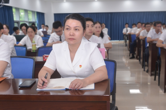 南寧路橋公司黨總支部書(shū)記、董事長(zhǎng)韋敏生,云之龍黨總支部書(shū)記、總裁王東梅,以及雙方黨總支部黨員、云之龍全體員工共300多人同上專題黨課,共筑清風(fēng)正氣。