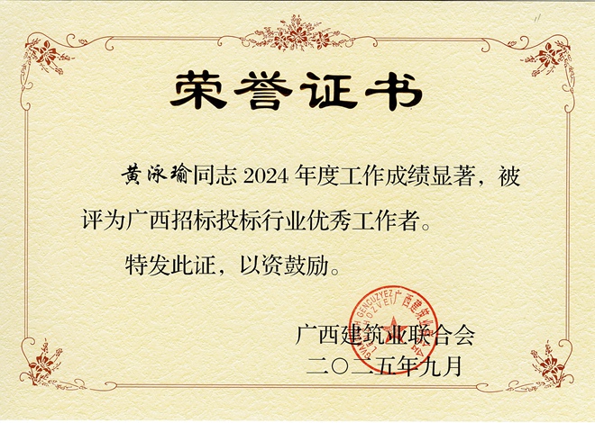 “廣西招標投標行業優秀企業”由廣西建筑業聯合會組織評選