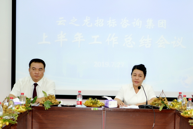 2019年7月27日,云之龍集團在中明大廈12樓會議室召開上半年工作總結會。集團董事長梁榮森、總裁王鐿霖及集團中高層領導、各分公司總經理等五十多人參加會議。