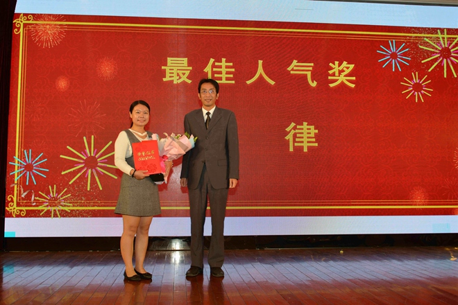 最終,來自貴港分公司的徐律以一段樸實無華的真誠話語,打動了觀眾們,獲得全場最高票,贏得“最佳人氣獎”。